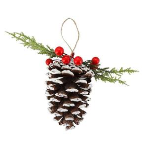 Pinha Decorada Natalina Grande Nevado com Folhagens e Berries 14cm