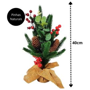 -01 Unidade Pinheiro Decorativo Luxo 40cm - Base de Juta com Pinha Natural e Azevinho