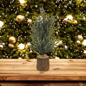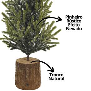 -01 Unidade Pinheiro Nevado Rústico Base tronco Enfeite de mesa 35cm - Magizi