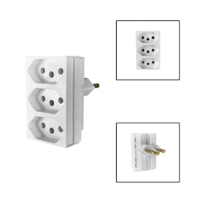 - 01 Pino Adaptador Triplo 3 Pinos Monobloco 20A Branco.