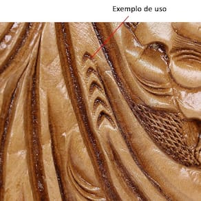 Pino para bordar couro Bronc-Steel, fabricado artesanalmente em aço extremamente resistente, esculpido manualmente em alto relevo com design aperfeiçoado e banho cromo de alta fixação, ideal para couros (solas) com espessura acima de 5mm. O cabo é recartilhado em alto relevo o que garante maior aderência e o seu tamanho permite melhor manuseio evitando pancadas na mão ao bordar. Para garantir a durabilidade e eficiência, recomenda-se o seu uso com Martelo de Tecnil que absorverá melhor o impacto e evitará que a peça seja danificada.