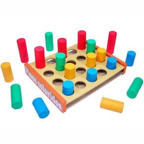 Pinos Coloridos - Planeta Brinquedos Composto por 1 base com 20 pinos coloridos de tamanhos diferentes, tudo fabricado em madeira, pintado com cores vivas e tintas atóxicas. Trabalha a numeração, coordenação viso-motora, cores e tamanhos, quantidade, formas e a memorização. Devido a origem do produto ser artesanal podem ocorrer variações nas cores de acordo com o do produto. Excelente acabamento. Idade: a partir de 3 anos. Certificação Inmetro: CE-BRI/ICEPEX-N 00174-82 NM300/2002. Ean: 2960003509550
