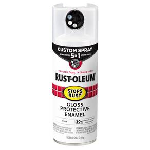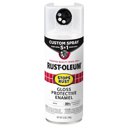 Rust-Oleum 376886 Detiene el Óxido Aerosol Personalizado 5 en 1, Pintura en Aerosol, 340 g, Blanco Brillante - El dial personalizado 5 en 1 ofrece cinco patrones de pulverización para un control total y resultados superiores - Fórmula avanzada a base de aceite que ofrece un 30% más de resistencia a la corrosión y mayor retención del color en comparación con los colores originales Stops Rust - Pintura esmaltada protectora que seca al tacto en 2-4 horas y cubre de 0.56 a 0.93 m² por lata - Opciones de patrón de pulverización: alta salida, estándar, baja salida, abanico vertical y abanico horizontal con tecnología de pulverización 360° en cualquier ángulo - Acabado brillante que aporta un brillo renovado a las superficies