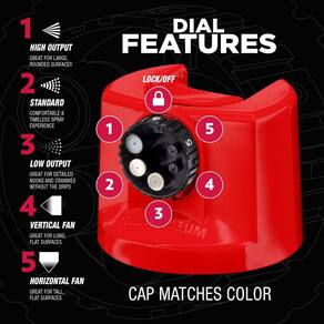 Rust-Oleum 376889 Stops Rust Spray Personalizado 5 en 1, pintura en aerosol de 340 g, acabado brillante en color cereza. - El dial 5 en 1 del Spray Personalizado ofrece cinco patrones de pulverización para control total y resultados superiores. - Fórmula avanzada a base de aceite que ofrece un 30% más de resistencia a la corrosión y mayor retención del color en comparación con los colores originales Stops Rust. - La pintura esmalte protectora se seca al tacto en 2-4 horas y cubre entre 0.56 y 0.93 m² por lata. - Elige entre modos de pulverización alto, estándar, bajo, abanico vertical y abanico horizontal con tecnología de pulverización a 360° en cualquier ángulo. - Acabado brillante que aporta un brillo renovado a las superficies.