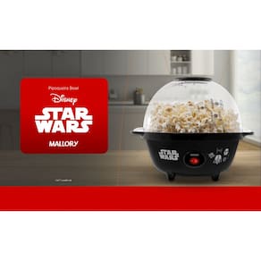 Pipoqueira Bowl Mallory Star Wars, prepara pipocas doces ou salgadas, tampa 2 em 1 que serve como bowl, botão liga/desliga, pés antiderrapantes, produto oficial licenciado Disney/Lucas Film.Porta fio