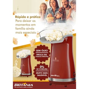 Pipoqueira elétrica sem óleo, prepara pipoca rapidamente. Possui bocal direcionador, dosador para pipoca, chave liga/desliga e sistema porta fio. Pés antiderrapantes para maior segurança.Luz indicadora de funcionamento