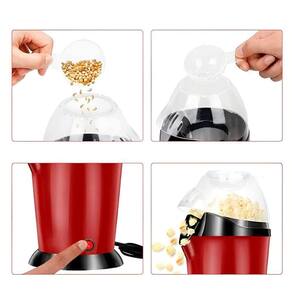 Pipoqueira elétrica a ar quente, sem óleo. Design moderno nas cores vermelho e preto. Tampa medidora e direcionadora de pipoca. Tempo de preparo de aproximadamente 3 minutos. Pipoca crocante e saudável.Luz indicadora de funcionamento