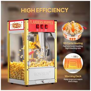 Pipoqueira elétrica com capacidade de 7,2 kg, panela removível de 226g, colher de aço inoxidável, colher de óleo, 3 copos de pipoca e potência de 850W. Ideal para uso doméstico e comercial.Luz indicadora de funcionamento