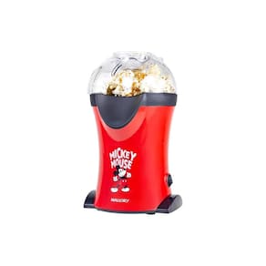 Pipoqueira elétrica com design temático do Mickey Mouse. Prepara pipocas sequinhas e sem óleo utilizando ar quente. Possui bocal expedidor para servir diretamente na tigela e copo medidor para derreter manteiga ou chocolate. Rápida, prática e segura, com pés antiderrapantes.Mangueira flexível