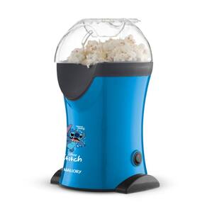 Pipoqueira elétrica Mallory Stitch, licenciada Disney, prepara pipocas crocantes e saudáveis sem óleo em menos de 3 minutos. Possui tampa medidora para derreter manteiga/chocolate e bocal direcionador.Preparação