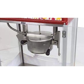 - Panela basculante em aço cromado com tampa em inox, parte interna em alumínio, com capacidade para 150g de milho de pipoca