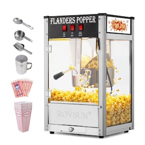 Máquina de pipoca profissional em aço inoxidável, com 3 interruptores de controle para aquecedor, agitador e aquecedor de panela. Inclui luz LED interna. Acompanha acessórios: 1 colher de pipoca, 1 colher medidora de óleo, 1 colher medidora de milho, 3 xícaras de pipoca e 1 agitador. Chaleira removível de 236 ml para fácil limpeza.Luz indicadora de funcionamento
