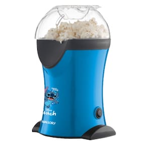 Pipoqueira elétrica com 1200W de potência, prepara pipocas sem óleo utilizando ar quente. Possui bico direcionador, tampa dosadora e design temático do personagem Stitch.Luz indicadora de funcionamento