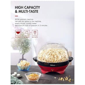 Pipoqueira elétrica Yabano com capacidade de 6 litros, Quickheat, agitação automática, placa antiaderente removível, tampa transparente que serve como recipiente e alças antitérmicas.Luz indicadora de funcionamento