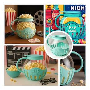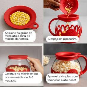 Pipoqueira para micro-ondas, sem óleo, saudável, design moderno e funcional, prepara pipoca em poucos minutos, segura, sem gordura, capacidade de 2,5 litros, fabricada em vidro de borossilicato com tampa de silicone e base de polipropileno PP, livre de BPA, tampa multifuncional que mede milho e derrete manteiga, fácil de usar e limpar, pode ir à lava-louças, reutilizável.Luz indicadora de funcionamento