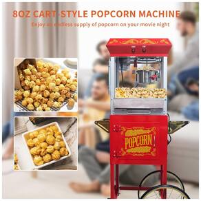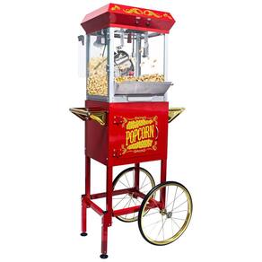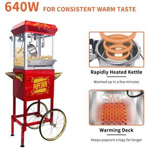 A eficiente Máquina de Pipoca deste modelo retrô de cinema possui uma potente caldeira de aço inoxidável de 650W, produzindo até 7,5 litros de pipoca fresca por fornada. Com deck aquecido e gaveta de resíduos 'old maids', garante pipocas quentes, fofas e uma limpeza sem complicações para uso residencial e comercial. Projetada com vidro temperado e aço inoxidável durável, oferece controle independente para a lâmpada de aquecimento e o aquecedor do agitador, proporcionando facilidade e eficiência na produção de pipoca. Montada em um carrinho resistente com pneus de 40,64cm, oferece mobilidade suave e estável, além de um armário de armazenamento e prateleira, sendo ideal para transportar e servir em festas ou eventos. Com um visual vintage inspirado em antigas máquinas de pipoca, traz um toque clássico a qualquer ambiente, evocando o charme dos antigos cinemas. Completa com acessórios, está pronta para oferecer deliciosas pipocas frescas, sendo perfeita para qualquer ocasião.