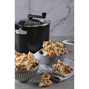 Corpo de alumínio com espessura de 3,0 mm que proporciona cozimento rápido e uniforme | Revestimento interno e externo de antiaderente Starflon Premium que não gruda, é fácil de limpar, mais durável e não é prejudicial a saúde | Tampa de alumínio com trava antigiro: não gira durante o preparo | Alças metálicas com proteção de silicone, oferecendo maior durante o manuseio | Sua pipoqueira tem saída de vapor, evitando que este condense dentro da panela e umedeça as pipocas | Manípulo de nylonLuz indicadora de funcionamento