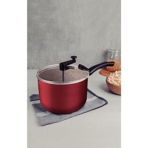 A pipoqueira Tramontina Paris em alumínio com revestimento interno e externo em antiaderente Starflon Max vermelho 22 centímetros de diâmetro 4,8 litros é a escolha ideal para preparar aquela pipoca saborosa para seu lanche e acompanhar seu filme preferido. Com produção em alumínio com revestimento interno e externo em antiaderente Starflon Max, ela garante que o milho da pipoca estoure rapidamente e uniformemente, sem que grudem em sua superfície. Sua tampa é em vidro temperado com borda de silicone, não gira durante o preparo e garante um manuseio mais , pois seu cabo e manípulo são em materiais antitérmicos. A pipoqueira ainda é superfácil de limpar e pode ser lavada na máquina de lavar louças!