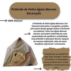 Pirâmide de Pedra Ágata Marrom Decoração Pirâmide de Pedra Ágata Marrom Decoração A Pirâmide de Pedra Ágata Marrom é um elemento decorativo e energético, perfeito para quem deseja agregar beleza e harmonia ao ambiente. Feita com Ágata Marrom natural, uma pedra conhecida por suas propriedades de equilíbrio e estabilidade, esta pirâmide é ideal para decorar espaços de maneira sofisticada, além de trazer benefícios espirituais e emocionais. A Ágata Marrom, com suas cores terrosas e padrões únicos, transmite uma sensação de acolhimento e conexão com a terra, favorecendo a paz interior e a proteção. A forma piramidal potencializa as energias da pedra, criando uma atmosfera de harmonia e fortalecendo a energia do ambiente. Benefícios: Equilíbrio e Estabilidade: A Ágata Marrom é uma pedra que promove estabilidade emocional, ajudando a equilibrar as energias do ambiente e proporcionando um estado de tranquilidade e serenidade. Proteção Energética: A pirâmide de Ágata Marrom atua como um poderoso protetor de energias negativas, criando uma barreira que filtra vibrações indesejadas e promove um ambiente mais seguro e harmonioso. Atenuação de Ansiedade e : Ideal para quem busca um auxílio contra ansiedade, o ou tensões emocionais, essa pedra ajuda a aliviar esses sentimentos, promovendo um estado mental mais calmo e focado. Decoração Sofisticada: Além de suas propriedades espirituais, a pirâmide de Ágata Marrom é uma peça decorativa elegante e atemporal, que combina com diversos estilos de interiores, desde os mais modernos até os mais tradicionais. Apoio ao Crescimento Pessoal: A pirâmide também pode auxiliar na superação de obstáculos e no desenvolvimento de uma maior autoestima, trazendo uma energia que incentiva o autoconhecimento e a evolução pessoal. Esta pirâmide de Ágata Marrom é um excelente item tanto para quem busca benefícios energéticos quanto para quem deseja embelezar seu espaço com um toque de elegância e espiritualidade. Ideal para escritórios, salas de meditação, quartos ou qualquer ambiente onde a paz e o equilíbrio sejam desejados. Enviamos a sua peça em até 24 horas após a confirmação do pagamento Caso tenha alguma dúvida nos mande mensagem que responderemos rapidinho para te ajudar Marca: Não Informado Ean: 7894135851537