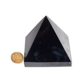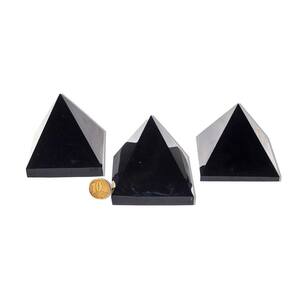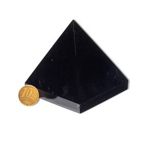 Nome das Pedras: Obsidiana Negra Cor: Preto Corte: Pirâmide inspirada na Pirâmide de Quéops (não exato) Claridade: Brilhante, sem transparência Medidas: Base de 70 a 80 mm, altura média de 60 mm Peso: 350 a 400g Origem: Brasil
