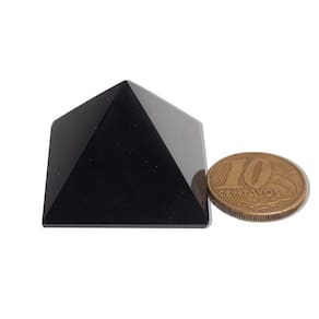 Mini Pirâmide Ametista com qualidade comum, tendo aproximadamente 20mm, pedra natural baseada na grande Pirâmide Quéops. Lapidação manual.