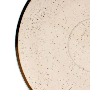 É produzido em porcelana de altíssima qualidade na cor bege claro com bordas e detalhes marrons, que traz uma sensação de leveza a sua mesa.