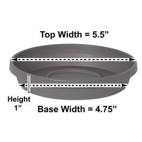- Tamanho: 5,5 pol. Largura superior x 4,75 pol. Largura inferior x 1 pol. Altura
