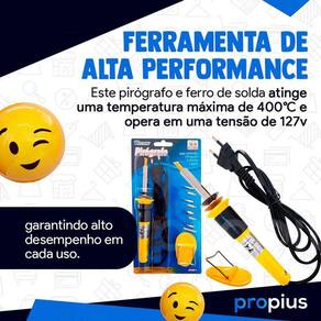 Feito com materiais de alta qualidade como policarbonato, PVC, aço inoxidável e cobre, este pirógrafo e ferro de solda 2 em 1 é durável e confiável. Seu potencial máximo de temperatura é de 400C e opera em uma tensão de 127v, garantindo alto desempenho em cada uso.