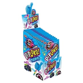 Informações do Produto: Pirulito joia no sabor blueberry. Sua haste possui efeito neon que brilha no escuro, para ativá-lo basta dobrar a haste e agitar. Ideal para festas e baladas