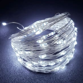 Baixo consumo de energia, Alta durabilidade, brilho intenso, Fio branco resistente e flexível para instalação interna ou externa