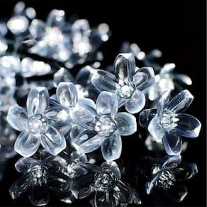 Pisca Cordão Flores Cerejeira Solar Externo 20LEDs 5M Branco -