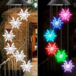 Pisca Giratório Solar Flocos Neve Enfeite Natal LED Colorido -