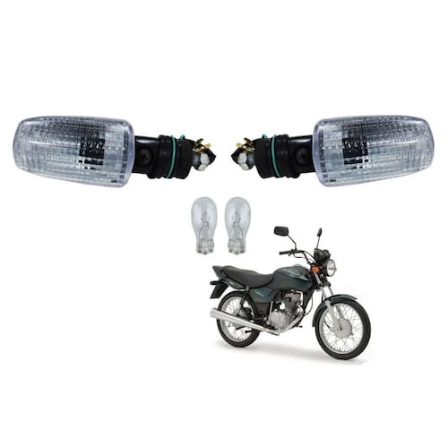 jogo 4 pisca seta lente cristal + lampadas cg titan fan 125 150 cbx 250 twister cb xre 300, compre com a megga motos virtual a loja de moto peças mais próxima de você, com produtos e paralelos para sua motocicleta com ótimos preços para você motociclista, motoboy, entregador de aplicativo e entusiastas de motos. Imagem meramente ilustrativa