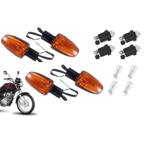 kit 4 pisca laranja com coxim + lampada cg titan fan 125 150 cbx 250 twister cb xre 300, compre com a megga motos virtual a loja de moto peças mais próxima de você, com produtos e paralelos para sua motocicleta com ótimos preços para você motociclista, motoboy, entregador de aplicativo e entusiastas de motos. Imagem meramente ilustrativa