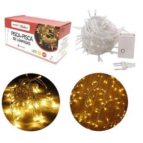 Conteúdo da embalagem: 01 unidade Pisca Pisca 100 Lâmpadas LED Branco Quente Fio Transparente 8 Funções 127V - Master Christmas