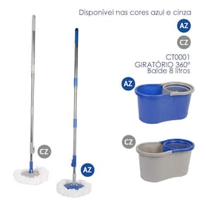 Pisca Pisca 100 Leds 127V 60Hz 8 Funções Fio Transparente 9m Cor: Branco Quente Ideal para manter sua casa limpa com muita rapidez e praticidade, o Mop é perfeito para todos os tipos de pisos e superfícies plana, podendo ser em madeira, vinil, laminado, azulejo, vidros, janelas, entre outros.Protege suas mãos do contato com a sujeira e produtos químicos, basta colocar dentro do balde, em seguida colocar o mop na centrífuga e empurrar para baixo, o movimento de girar irá torcer de maneira automática tirando toda o excesso de água, possui alta capacidade de absorção de água absorvendo mais poeira do que os esfregões tradicionais. Recomendações de Uso:Usar somente com produtos diluídos em água;Para o uso tradicional de piso, diluir 2 tampas de desinfetante em 5 litros de água;Após o uso, lave o refil com torção, secar à sombra. Características:altura Cabo: 1,20m;Comprimento Balde: 44cm x 19,5cm;Diâmetro Mop: 16cmCor: Azul ou Cinza enviado conforme disponível Conteúdo: 1 Mop + 1 Balde.