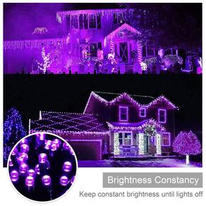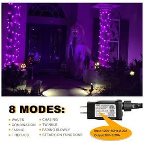 Pisca Pisca 200 LED 20 Metros a Prova dÁgua com 8 Modos para Decoração de Halloween e Natal, Roxo - Branco