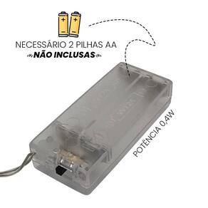 -não instalar em árvores que tenham arranjos, folhas ou galhos revestidos de metal ou metalizados; -não monte ou instale os fios de maneira que os mesmos possam ser danificados ou cortados; -manter fora do alcance de crianças. -necessário 02 pilhas aa não inclusas -2 metros -potência: 0,4w -amperagem: 0,02a