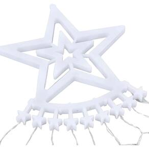 1 Cortina Grande Solar Com Topo De Estrela Com 9 Cordões Com LEDs Amarelo;
