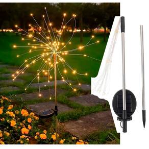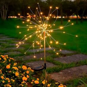 Pisca Solar Natal Jardim Fogos Artifício Luzes LEDs Amarelo -