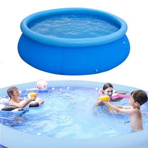 A Piscina Com Borda Inflável é perfeita para se refrescar no calor do verão, além de ser a diversão garantida para a criançada. Super simples de montar, não possui estrutura e seu material em lona é reforçada, sua única estrutura é a água, evitando quinas e peças rígidas que podem ferir os pequenos. Material de alta resistência, com 2 camadas de pvc, é compacto e portátil, possibilitando desmontar e dobrar, para guardar ou levar para qualquer lugar.