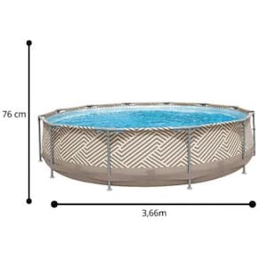 Produzida com materiais de alta qualidade, a piscina apresenta peças plásticas em polipropileno e estrutura em aço com pintura epóxi à pó, garantindo resistência e durabilidade. Sua lona com tripla camada e fitas em PVC fixas ao redor proporcionam estabilidade estrutural, reduzindo riscos de rasgos e aumentando a vida útil do produto. Além disso, o design circular favorece a distribuição da água de forma uniforme, tornando a experiência de uso ainda mais agradável.