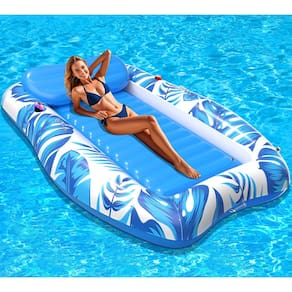 - : O tamanho da nossa piscina inflável de bronzeamento é de 190,5 x 122 cm, aproveite a conveniência de um porta-copos, suporte de telefone e 3 alças. Suporte de copo e telefone estrategicamente posicionados para fácil acesso, garantindo que você tenha tudo o que precisa para um dia refrescante na água. Além disso, o design de válvula dupla garante que a boia da piscina de bronzeamento seja fácil de inflar/esvaziar. Você pode guardar convenientemente, muito fácil de levar para a praia, lago ou outros lugares