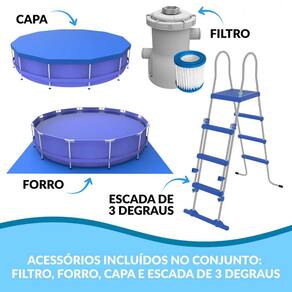 Acessórios incluídos: Filtro, Forro, Capa e Escada de 3 degraus