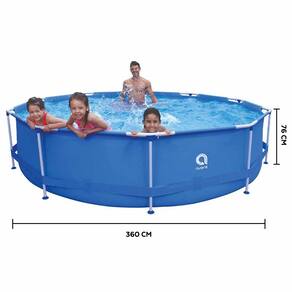 Características: - Marca: Jilong. - Capacidade: 6.125L (90% de sua capacidade máxima). - Material: Piscina em lona PVC de alta resistência e durabilidade. - Dimensões: 360 CM de diâmetro e 76 CM de altura. - Peso aproximado: 21 Quilos. - Cor: Azul. - Acompanha bomba filtrante 2006L/H - Piscina com válvula de escoamento. - Acompanha Adesivo e reparo e manual de instruções.