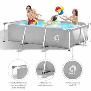 Características: - Marca: Jilong/Avenli - Capacidade: 3.701 Litros. - Material: Piscina em lona PVC de alta resistência e durabilidade. - Dimensões: 300cm x 207cm x 65cm - Peso aproximado: 21 Quilos. - Cor: Cinza - Piscina com válvula de escoamento. - Acompanha Adesivo de reparo e manual de instruções.