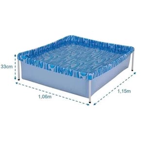 A Piscina Estrutural Retangular Mor 400 Litros Infantil possui medidas de 1,15cm de comprimento, 1,06cm de largura e 33cm de altura, proporcionando espaço suficiente para que as crianças possam brincar e se divertir com conforto.