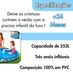 Proporcione momentos de diversão e refresco para as crianças com a Piscina Infantil 3 Anéis Fundo do Mar da Funs. Com capacidade para até 253 litros, essa piscina colorida e temática transforma o verão em uma aventura no fundo do mar, com design alegre e vibrante.
