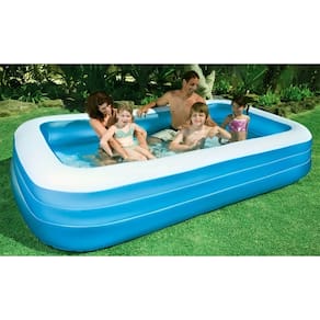 Tenha o conforto de uma piscina em casa com praticidade e economia. Garanta agora a sua Piscina Inflável Retangular Grande Familiar 1050L e aproveite momentos inesquecíveis em família neste verão!