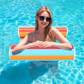 - Design multiuso: este flutuador de piscina 4 em 1 funciona como sela, espreguiçadeira, rede e plataforma de flutuação. Um brinquedo aquático essencial de verão que garante diversão infinita em superfícies aquáticas.